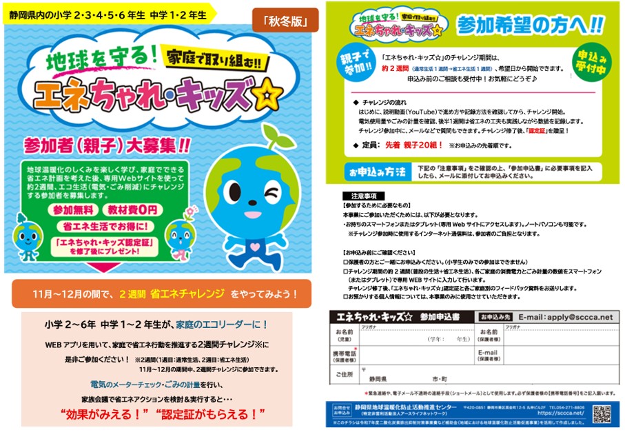 ●お問合せ先:静岡県地球温暖化防止活動推進センター(エネちゃれ・キッズ☆担当)